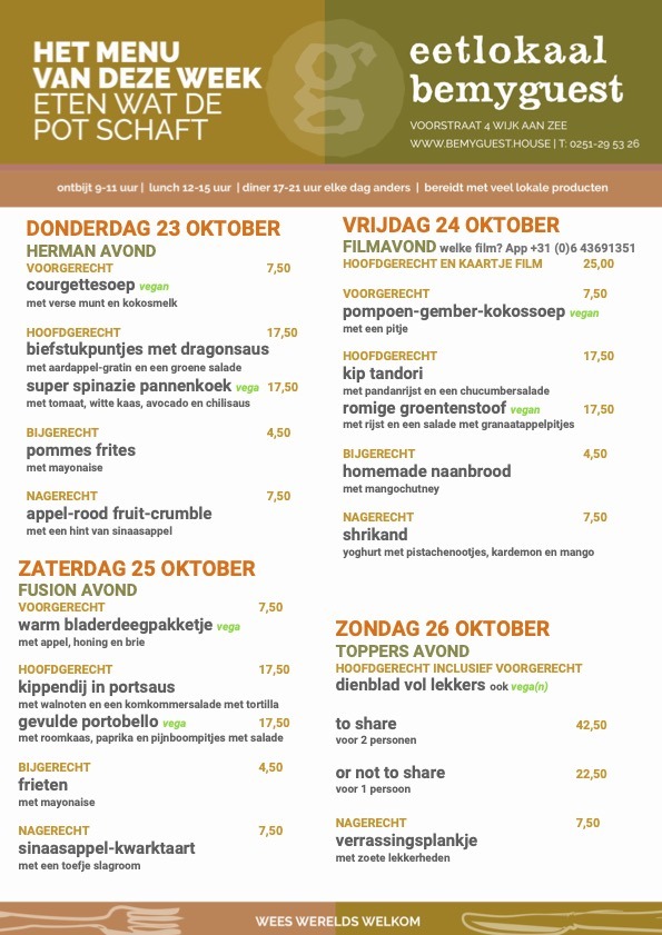 Menukaart Be my Guest wijk aan zee
